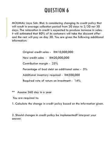 MOLIMAU Jaya Sdn. Bhd. Is considering changing its credit policy that