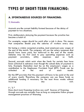 TYPES OF SHORT-TERM FINANCING: