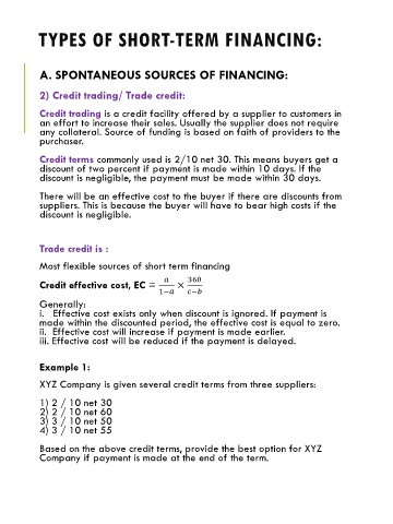 A. SPONTANEOUS SOURCES OF FINANCING: