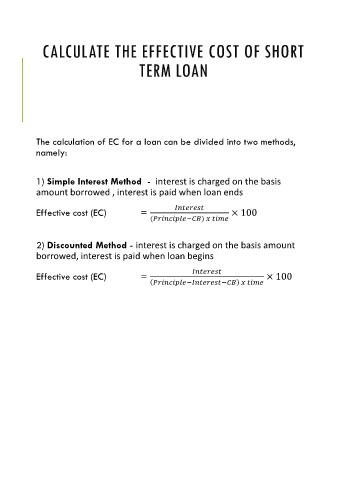 2) Discounted Method - interest is charged on the basis amount