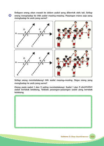 Orang pada sudut 1 dan 3 saling membelakangi. Sudut 1 dan 3 dinamakan