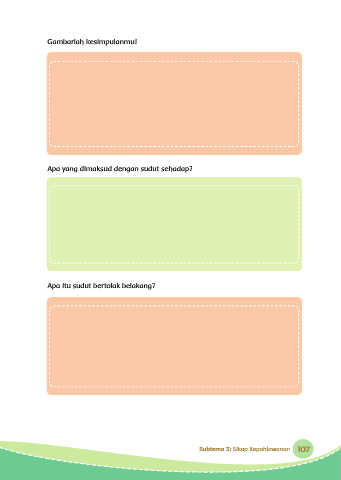 Gambarlah kesimpulanmu! Apa yang dimaksud dengan sudut sehadap? Apa itu sudut bertolak belakang? Subtema 3: Sikap Kepahlawanan 107