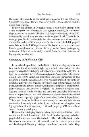 page. This is called Cataloging in Pub lication, a pro ject started by the Li -