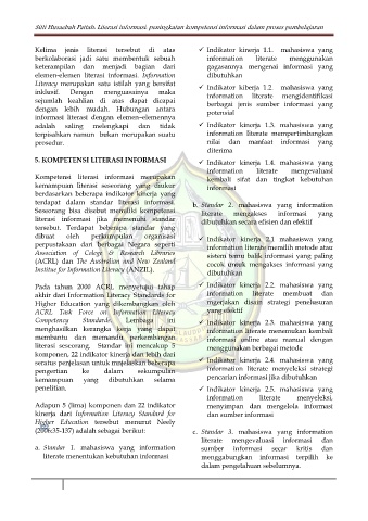 terdapat dalam standar literasi informasi. b. Standar 2. mahasiswa yang information