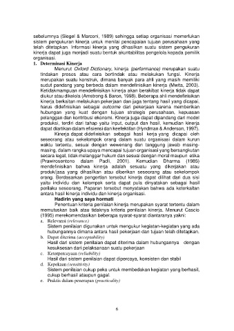 Penentuan kriteria penilaian kinerja merupakan syarat tertentu dalam