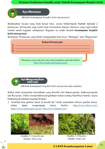 1. Amatilah lima gambar lumut di bawah ini! Untuk menambah refrensi gambar lumut,