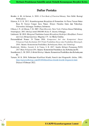 Lukitasari, M. 2018. Mengenal Tumbuhan Lumut (Bryophyta) Deskripsi, Klasifikasi, Potensi