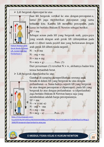 Hukum Newton pada arah gerak lift diberi tanda negatif.