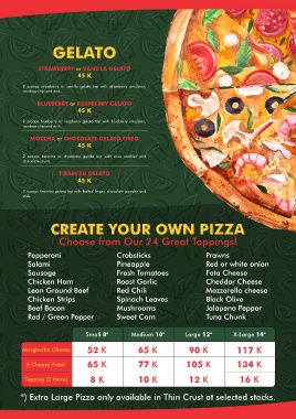 *) Extra Large Pizza only available in Thin Crust at selected stocks.