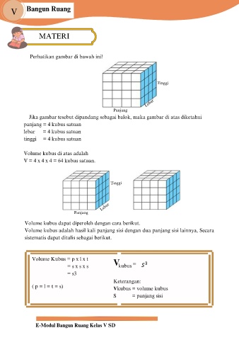Volume kubus adalah hasil kali panjang sisi dengan dua panjang sisi lainnya, Secara