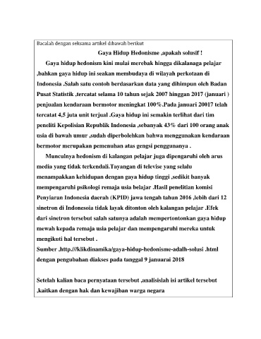 Bacalah dengan seksama artikel dibawah berikut