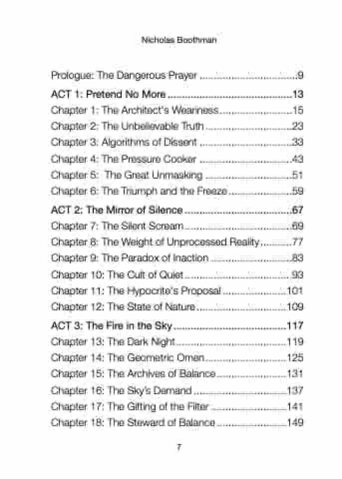 ACT 1: Pretend No More Chapter 1: The Architect's Weariness .........................15