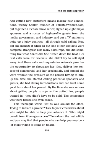 first calls were for referrals; she didn’t try to sell right