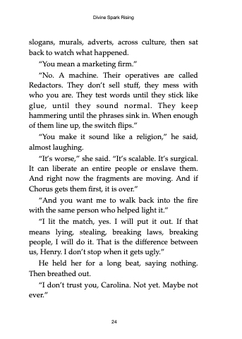 “I don’t trust you, Carolina. Not yet. Maybe not