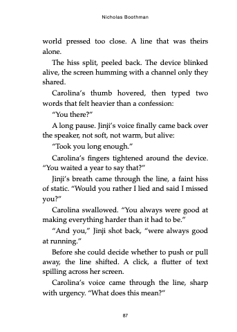 away, the line shifted. A click, a flutter of text