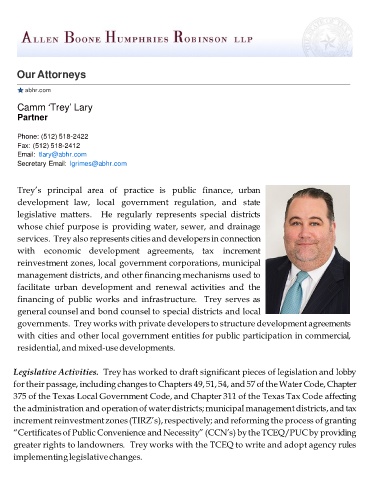 services. Trey also represents cities and developers in connection