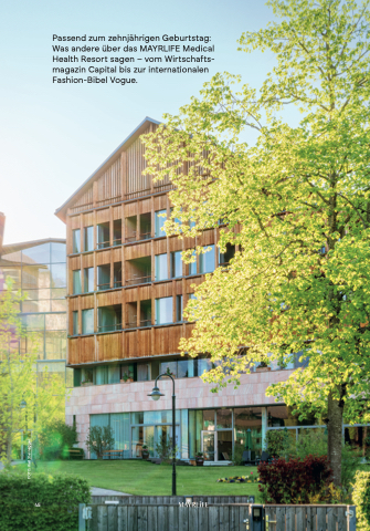 Passend zum zehnjährigen Geburtstag: Was andere über das MAYRLIFE Medical Health Resort sagen – vom Wirtschafts- magazin Capital bis zur internationalen Fashion-Bibel Vogue. FOTO: Karl Steinegger 45