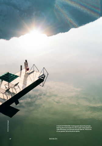 PHOTO: Karl Steinegger 47 A SLICE OF PARADISE: Hotel guests adore the private bathing deck that leads into the crystal-clear waters of Lake Altaussee, a protected natural reserve. This is one of our guests’ favourite photo spots.