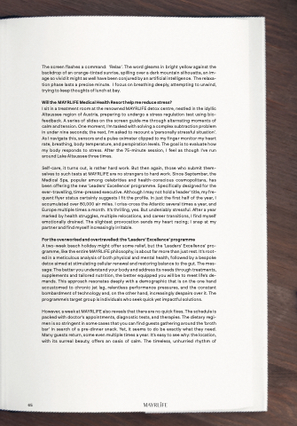 However, a week at MAYRLIFE also reveals that there are no quick fixes. The schedule is