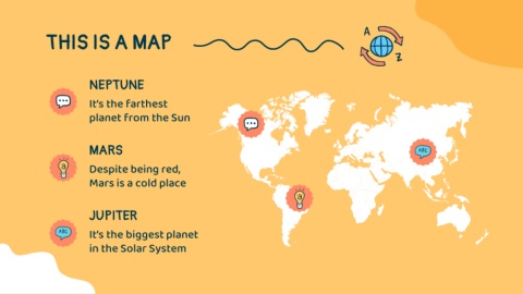 THIS IS A MAP NEPTUNE It’s the farthest planet from the Sun MARS Despite being red, Mars is a cold place JUPITER It’s the biggest planet in the Solar System