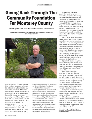 BY AMANDA HOLDER DIRECTOR OF COMMUNICATIONS, COMMUNITY FOUNDATION Foundation Fund, a donor advised