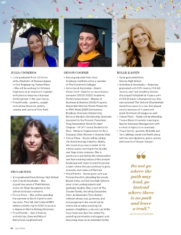 • Julia graduated from UC Irvine • Devon graduated from Keck • Rylee graduated from • Zachary graduated from the University a daring • Josh graduated from Cal State