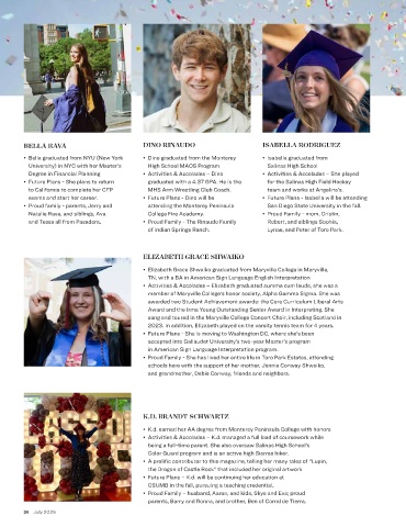• Proud family - parents, Jerry and attending the Monterey Peninsula San Diego State University in the fall. two sisters of San Benancio. • Future Plans – He will be attending Colorado
