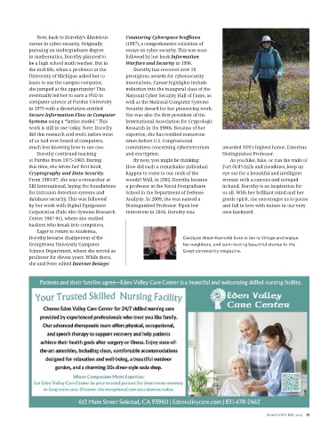 throughout Fort Ord. Dorothy became chairperson of the Carolyne West-Karnofel lives in Serra Village and enjoys