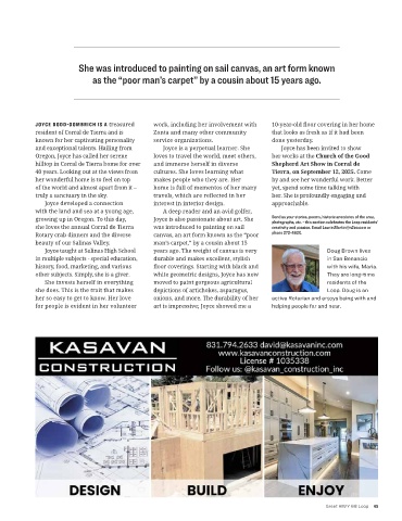 she loves the annual Corral de Tierra was introduced to painting on sail creativity and passion. Email Laurie.Martin@n2co.com or