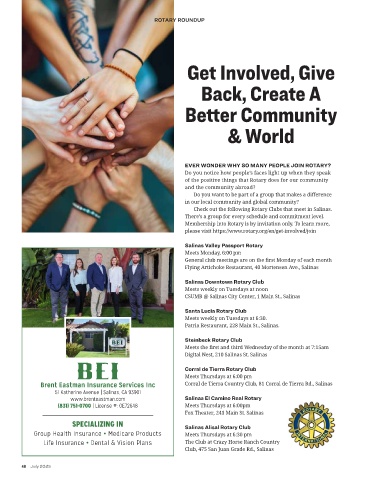 Check out the following Rotary Clubs that meet in Salinas.