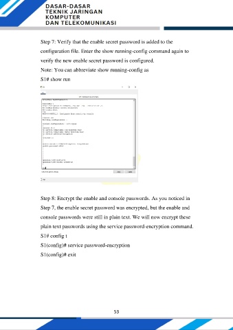 Step 8: Encrypt the enable and console passwords. As you noticed in