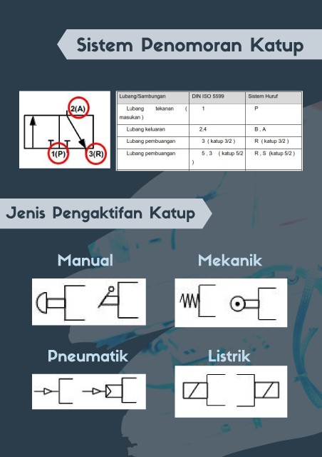 Sistem Penomoran Katup Jenis Pengaktifan Katup Manual Mekanik Pneumatik Listrik