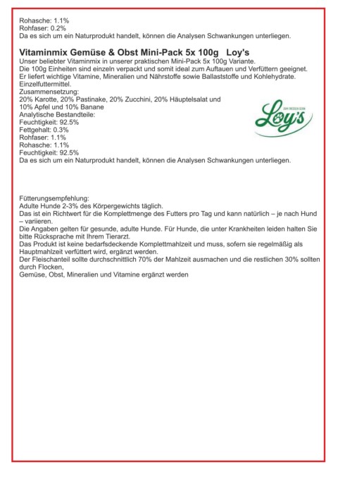 Vitaminmix Gemüse & Obst Mini-Pack 5x 100g Loy's