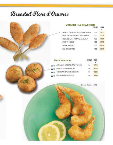 COCONUT CHICKEN TENDERS ON A SKEWER 100 PECAN CHICKEN TENDERS ON A SKEWER 100 CHICKEN BREAST TEMPURA SEWERED 100