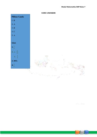 Modul Matematika SMP Kelas 7 KUNCI JAWABAN Pilihan Ganda 1. B 2. A 3. B 4. C 5. A Isian 1 1. 4 8 2.. a. 15 1 b. 5 3. 50% 4 4. 5