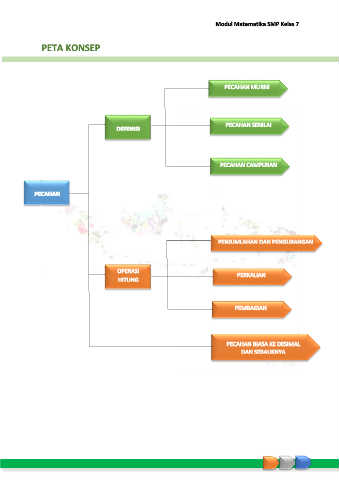 Modul Matematika SMP Kelas 7 PETA KONSEP PECAHAN MURNI DEFENISI PECAHAN SENILAI PECAHAN CAMPURAN PECAHAN PENJUMLAHAN DAN PENGURANGAN OPERASI HITUNG PERKALIAN PEMBAGIAN PECAHAN BIASA KE DESIMAL DAN SEBALIKNYA