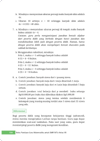Catatan: guru perlu mengantisipasi jawaban bentuk aljabar