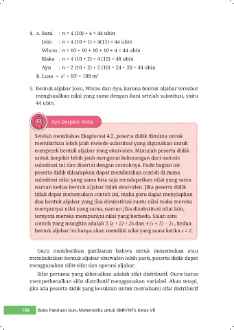 mengecek bentuk aljabar yang ekuivalen. Mintalah peserta didik
