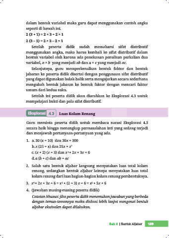 jabaran ke peserta didik disertai dengan penggunaan sifat distributif