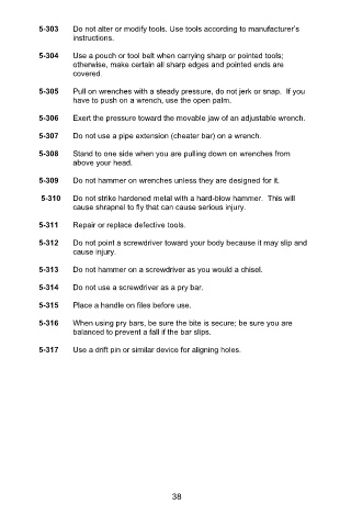 5-303 Do not alter or modify tools. Use tools according to manufacturer’s