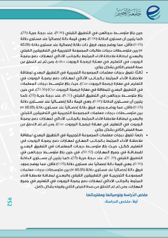 952 ملخص الدراسة ويوصيايها ومقَّتحايها