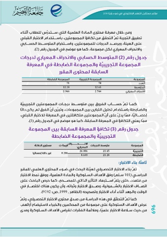 2030 2 2 71 70 12.18 12.65 2.966 2.744 3 3 0.206 26.086 21.65 8.649 21.28 ثامنا :بناء الاختبار: 101 9192 ,1999 , 969