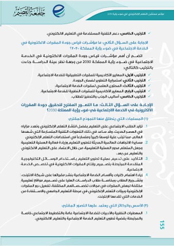 2030 ✓ 2030 ✓ ✓ ✓ ✓ ✓ الإجااباة عالى الساالال الاثاالاث :ماا الاتصااور الماقاتر لاتاحاقاياق جاودة الماقاررات الالكترونية في الخدمة الاجتماعية في ضو رؤية المملكة 2030؟ .1 .2 .3 .4 .1 155