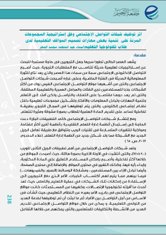 238 أثر توظيف شبكات التواصل الإجتماعي وفق إستراتيجية المجموعات المرنة على تنمية بعض مهارات تصميم المواقف التعليمية لدى طلاب تكنولوجيا التعليمأسماء عبد المنعم محمد المهر مقدمة: Web 238