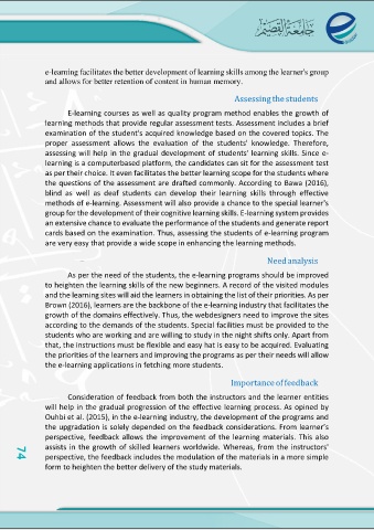 methods of e-learning. Assessment will also provide a chance to the special learner's