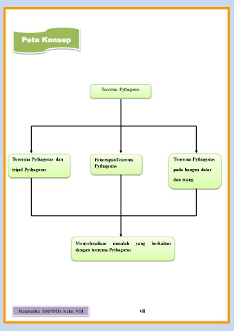 Peta Konsep Teorema Pythagoras Teorema Pythagoras dan PenerapanTeorema Teorema Pythagoras Pythagoras tripel Pythagoras pada bangun datar dan ruang Menyelesaikan masalah yang berkaitan dengan teorema Pythagoras Matematika SMP/MTs Kelas VIII vii