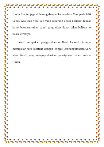 Hindu. Hal ini juga didukung dengan keberadaan Yoni pada bilik