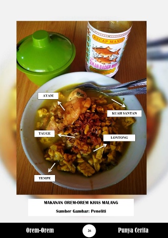 AYAM KUAH SANTAN TAUGE LONTONG TEMPE MAKANAN OREM-OREM KHAS MALANG Sumber Gambar: Peneliti 26 Orem-Orem 26 Punya Cerita
