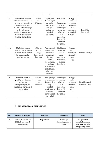 No. Waktu & Tempat Masalah Intervensi Hasil