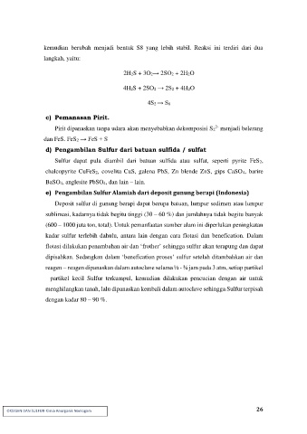 d) Pengambilan Sulfur dari batuan sulfida / sulfat